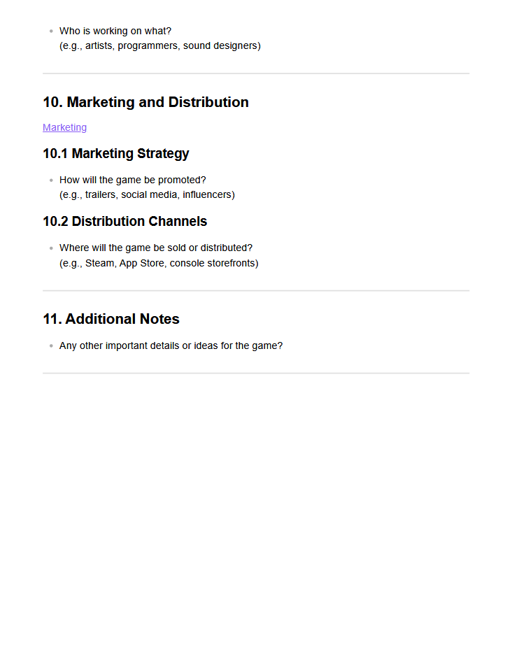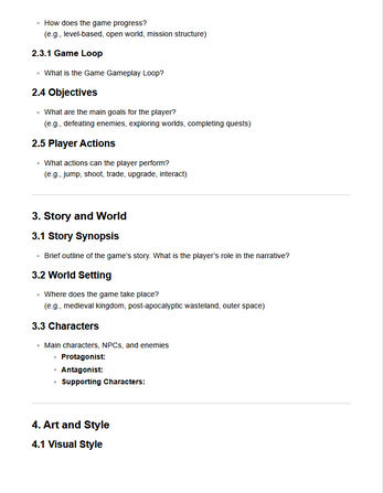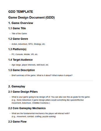 This is a free, easy-to-use Game Design Document template made for indie developers, students, and game jam teams.